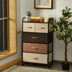Costway 5-Drawer Storage Dresser Organizer Unit With Fabric Bin For Living Room Bedroom