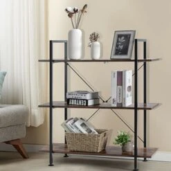 Costway 3-Tier Bookshelf Industrial Bookcase Display Shelf Storage Rack Rustic Brown