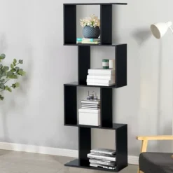 Costway 4-tier S-Shaped Bookcase Free Standing Storage Rack Wooden Display Decor Black