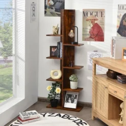 Costway 6-Tier Corner Shelf Bookshelf Industrial Storage Rack Cabinet Rustic Plant Stand