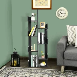 Costway 8-shelf Bookcase Freestanding Tree Shelf Display Storage Stand BlackWhite