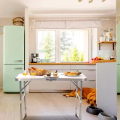 Costway Folding Table Portable Bi-fold Picnic Dining Table W/ 3-Level Height Adjustment