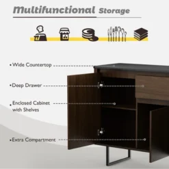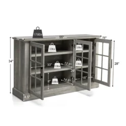 Costway 55” Buffet Server Table Storage Cabinet Sideboard Glass Doors Adjustable Shelves