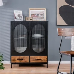 Costway Kitchen Buffet Server Sideboard Accent Cabinet With2 Tempered Glass Doors & Drawer