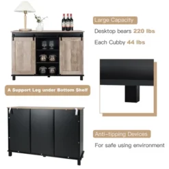 Costway Kitchen Buffet Storage Cabinet Sideboard W/Sliding Barn Door Wine Rack