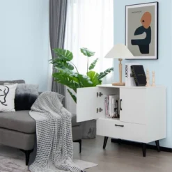 Costway Mid Century Storage Cabinet Accent Buffet Sideboard Entryway Kitchen White Brown