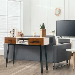 Costway Console Entryway Sofa Table With 2 Drawers For Entrance Living Room Rustic Brown/Walnut