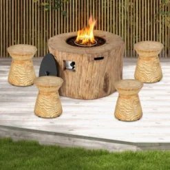 Costway 17” Concrete Accent Side Table Tree Stump Wood-like End Table Plant Stand Stool
