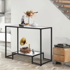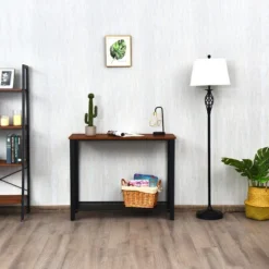 Costway Console Sofa Table W/ Storage Shelf Metal Frame Wood Look Entryway Table SilverBlack