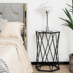Costway End Table Tempered Glass Top Metal Frame Hexagonal Accent Side Table Living Room
