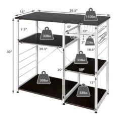 Costway Industrial Kitchen Baker’s Rack Microwave Stand Utility Storage Shelf W/ 6 Hooks Steel Black