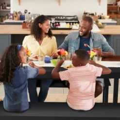 Enjoy wonderful dinner parties, cozy family dinners and light breakfasts at this 3 PCS dining table set. There is a rectangular dining table and 2 benches, which accommodates 2 to 4 persons. In this way, you can feel free to cater to your family members, friends and guests. The tabletop is large enough as well, and thus you can keep your beautiful cutleries and delicious dishes organized. The dining comfortableness matters a lot, and that’s why it adopts ideal height, both the table and benches. Superior material is selected to make the dining set stand out from other ordinary ones. Natural acacia wood means better durability, longer life span and higher sturdiness. Simple assembly and easy clean-up save you lot of time. Those who live in the small apartment or like such simple design will benefit a lot.