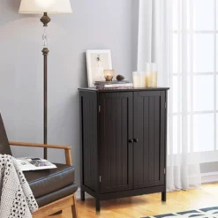 Designed for keeping your room organized in style, this elegant bathroom cabinet features a capacious storage room, which has double door cutting off space. With 2 layers space for meeting different kinds of objects , you can place your personal toiletries in it . And the available room can also keep other thing in order, such as towels, snacks, shoes and so on. You can use it as a storage cabinet for kitchen, living room or bedroom. In addition, the storage cabinet is using a quality pure white painted process that is waterproof and suitable for wet environments. Combined with simple look and practical function, this floor cabinet will cater to any room you decorate.