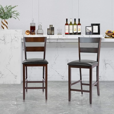 Are you looking for a piece of furniture that is functional and decorative? Our solid wood bar chair set highlights the feel of practical and fashionable. Selected high quality rubber wood with exquisite technology, this chair set is firm and durable. And each of our wooden bar chairs can load up to 300 lbs, safely and stably. Ergonomic backrest, soft padded seat and humanized footrest provide you with a comfortable long-time sitting experience. What’s more, widen PU seat with armless design allows you to change sitting postures flexibly. In addition, modern style makes this bar chair set suitable for different decoration styles.