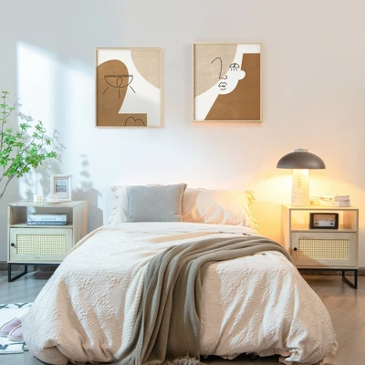 - Elegant Appearance to Light up Your Home: Combined natural wood color and black steel pipes, this nightstand delivers a modern and retro flavor, which pairs harmoniously with other existing furniture. Besides, the rattan decorated door not only adds a bit of elegance, but also facilitates air circulation.
