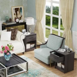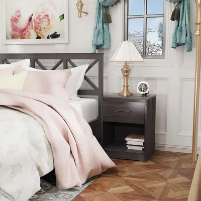 Would you like to get a practical addition with rustic appearance and ample storage spaces? Our bedside table can meet your requirements.Its overall load capacity is well ensured by the wooden structure. Coupled with the non-slip foot pads, the whole stability is also improved. Through simple assembly, you will get a 18” x 16” x 24” nightstand. It features a wide tabletop where you can put lamps, decorations and magazines. The drawer with steel slides and an aluminum handle can hold many valuable things. With the bottom compartment, you have sufficient space for sundry boxes. Finally, the bedside table is also ideal for living room, study, office and more places.
