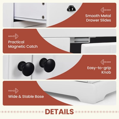 Buffet cabinet using thick MDF and particleboard, the overall structure is firm and not easy to shake. In addition, use of P2 grade plate, environmentally friendly and harmless. The unique buffet has three spacious drawers to facilitate your items, such as napkins, keys and other small items. Two cabinets with adjustable shelves are perfect for storing items of different heights. The simple and elegant style adorns the house while providing ample storage space. This beckoning storage cabinet is never let you down!