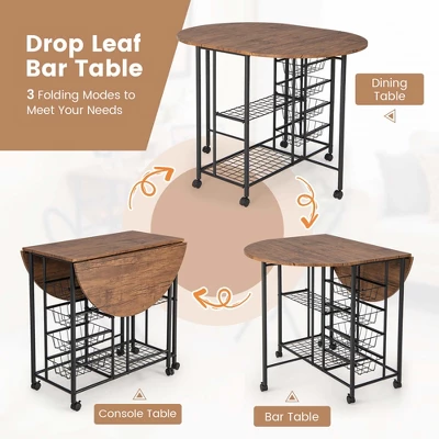 - Multifunctional Folding Dining Set: The 3 pcs folding dining table & chair set is a good choice for limited rooms, like apartments. The drop leaf table has 3 folding modes and can serve as a dining table, a bar table, a writing desk or a console table.