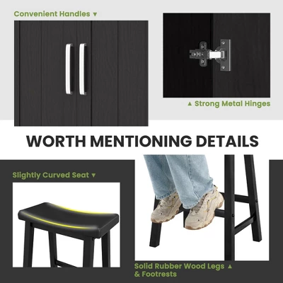 - Bar Table & Chairs Set for 2: This 3-piece bar table set consists of 1 bar table and 2 saddle stools, holding 2 people simultaneously. The multi-purpose table and chairs set gratifies your varying requirements, including working, studying, eating, chatting and other activities.