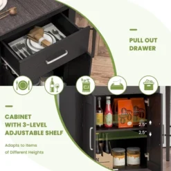 - Flexible & Rich Storage Options: With a pull out drawer and a cabinet with 3-level adjustable shelf (2.5”/6.5 cm as increment), the modern pub table boasts a large storage capacity. More importantly, the removable and adjustable shelf adapts to items of different heights for flexible storage solutions.