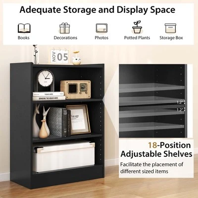 The bookcase combines modern simplicity and classic practicality, which will undoubtedly be a perfect centerpiece in your home! With wide cabinet top and 3-tier shelf, you can store all sorts of essentials inside, which is easily accessible as well. 18-position adjustable shelves allow you to customize storage space with great convenience. Equipped with anti-toppling device, the storage organizer is not easy to wobble or collapse. In addition, its modern design makes it possible matching well with different style, either for living room, bedroom and study.