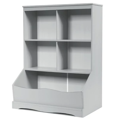- Large Storage Space: Featuring 4 cubbies and aspacious bin, this toy organizer provides ample storage space for you to arrange your children’s picture booksand toys. Besides, the spacious top is ideal for displaying photo frames and plants.