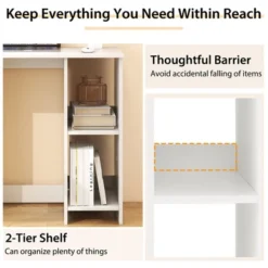 Let’s start the storage innovation with the 31.5″ home office desk!The 31.5″ computer desk may seem like a snug fit for small corners. However, it boasts sufficient working space to keep everything you need within reach. Or you can combine several desks to create a larger 1. Additional storage is achieved with the 2-tier shelf, which also features barrier to keep items from falling. In addition, the study desk is strong, since it has a better-quality frame that consists of thickened boards & extra crossbars. The overall load capacity is 290 lbs. Anti-slip foot pads are also included to offer better stability. At the same time, effortless installation is ensured, thanks to the easy-to-follow manual provided.