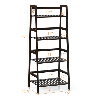 - Multi-layer Large Space: This 4-tier ladder shelf makes full use of vertical space, keeping your items organized. The width of the shelf from top to bottom becomes larger, allowing you to store items of different sizes. Each tier is 11.5 inches high, which is enough for general household storage needs.