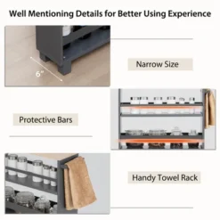 - Space-saving Slim Storage Cart: With the size of 21” x 6” x 31”, the slim storage cart works equally in any corner of your home, including kitchen, laundry, bathroom and living room. Additionally, simple and modern design integrates perfectly with interior decorations and shows your unique taste.