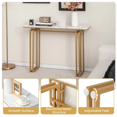 This faux marble tabletop table brings modern flair and stores a variety of things, giving you a tidy space. Made of premium materials, it is sturdy and durable. Plus, the adjustable feet add extra stability. You can fix it on the wall for reliable use. The console table is suitable for living room, foyer and other places.