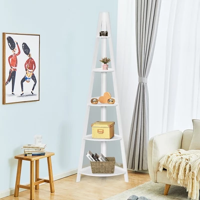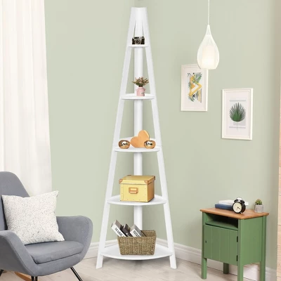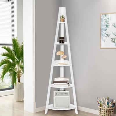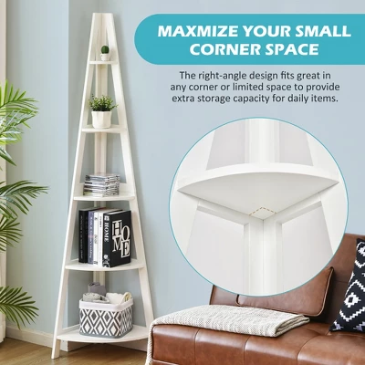 Constructed with sturdy MDF board, designed into an A-shaped frame, strengthened by solid screws, our corner ladder shelf is made into stable and durable furniture. And every shelf has a right-angle design for this furniture to fit wall corner of any rooms better. From top to bottom, shelf’s size is from smallest to largest, which means you can put objects of different sizes like cups, toys, books, or flowerpots. It is sophisticated and stylish, matches well with other furniture in home, office or balcony.
