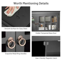 - With a clean edged top, rectangular legs, delicate glass, and classic circular handles, our distinctive TV stand creates a warm and charming atmosphere for your home or office.
