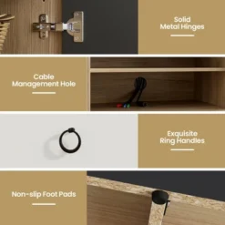 - Practical Cable Management Holes: The back of TV stand comes with 2 pre-drilled cable management holes to prevent clutter. All the cords and wires can be hidden so as to create a clean and tidy visual space. Besides, the cut-out design promotes better air circulation.