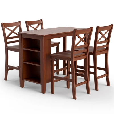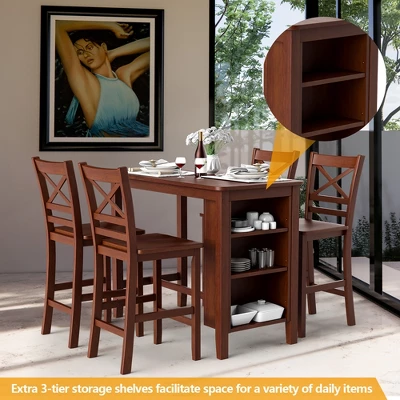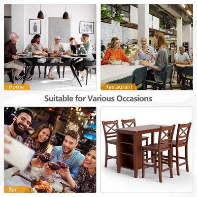 - Multipurpose Bar Table Set: Comes with 1 bar table and 4 solid wood chairs, this bar table set is a great option for enjoying pleasant meal time with your families or friends. It combines storage, relax ation and decoration all into one, which is suitable for commercial and domestic use, such as home, restaurant, cafe shop, etc.