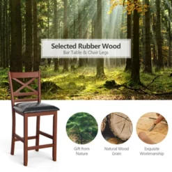- 5 Pieces Bar Table Set: This set includes 1 bar table and 4 upholstered chairs, which is a perfect place for 4 people to gather for a meal. In addition, the counter height bar table set with vintage style fits any indoor decoration, making it suitable for residential places and commercial occasions.