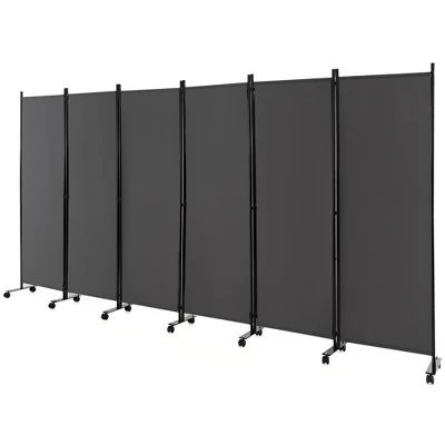 - 6-Panel Room Divider: Individual screen size is: 22″ x 68″, overall size: 132″ x 68″. This room divider can help you use the space in your room efficiently. It can create a quiet and undisturbed private corner for you at any time. This helps you to concentrate on your work or study. Also, it can help create a temporary bedroom or study in the living room.^Lockable Universal Wheels: The bottom of this privacy screen features 14 universal wheels, which makes our screen very easy to move from room to room. It is also easy to operate when you need to fold the screen. In addition, the universal wheels can be locked to prevent the screen from sliding after being placed in your designated position.^Sturdy and Durable Material: The folding privacy screen is made of high quality material. Its surface is not only wear-resistant, but also easy to clean and maintain. In addition, the dense woven fibers make the screen can better protect your privacy. The frame and base made of metal are strong and durable, with strong stability and load-bearing capacity. ^Free Combination Screen: This room divider includes 6 separate units. You can use them separately or join them into a larger whole. 15 connecting clasps will be included in the package to facilitate you to connect each page of the screen. The screen can be folded 360 degrees or can be placed into various shapes: such as L-shaped, W-shaped, C-shaped, etc.^Multiple Applications: The 6-panel screen with wheels not only provides you with a privacy space, but also can be placed in front of the window to block the sun. The portable design allows you to easily apply it anywhere, like bedroom, bathroom, office, school or hospital. With the help of this practical screen, you can create a private space and enjoy your time.
