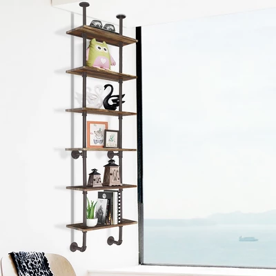 - 1 x 6-Tier Industrial Pipe Wall Shelf