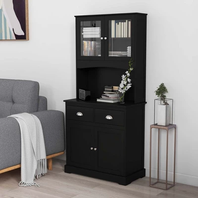 - Adjustable Shelf: Designed with 3 position adjustable shelf on both top and bottom cabinet for various storage, this kitchen buffet hutch is capable to fit different items. Which means you can customize the storage space according to your needs.