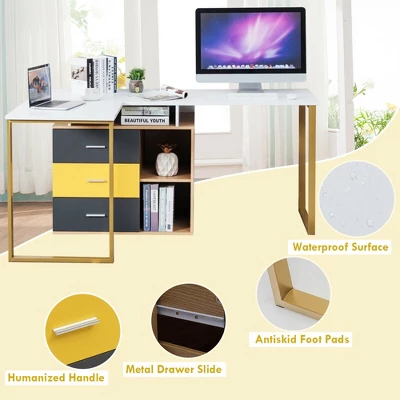 Do you want to share your workspace with your partners side by side? Our 2-person computer desk is a good choice for you to work with friends at the same time. 87” long desktop meets the different needs of 2 people, or you can assemble it into a L-shaped desk to fit any corner in your room. Featuring spacious desktop, 3 drawers and 2-tier shelves, it offers ample storage space for computers, printer, books, plant and more. What’s more, this double workstation is made of premium engineered board and metal frame, which is very sturdy and durable. You can use it as a 2-person writing table, office table as well as game desk. It is ideal for bedroom, study room and office.