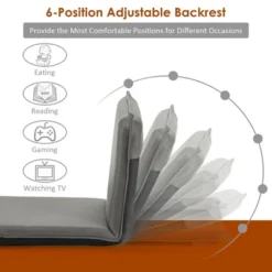 This is our latest floor chair which can be adjusted into 6 positions and satisfy your various demands. It allows you to read, watch TV, play games with your family, chat with your friends or just lie to enjoy your leisure time. And you will feel very comfortable sitting on this soft and thick seat in your bedroom, living room and anywhere you want. Also, it is convenient for you to store under your bed or couch without taking up too much space. Don’t hesitate to buy it now!