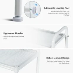 - 『Ample Storage Space』: With 3 shelves and a 2-door storage cabinet, this microwave oven stand provides large storage room for you, well accommodates your microwave oven, dishes, and other items, makes your kitchen neat and tidy.