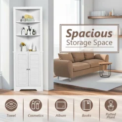 - Space-saving Design: Our corner cabinet is the perfect storage solution for homes and can maximize space utilization. The triangular design allows it to fit into any corner of the house, which provides generous storage without taking up much floor space.