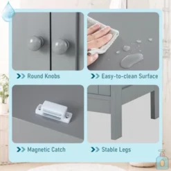 Designed for keeping your room organized in style, this elegant bathroom cabinet features a capacious storage room, which has double door cutting off space. With 2 layers space for meeting different kinds of objects , you can place your personal toiletries in it . And the available room can also keep other thing in order, such as towels, snacks, shoes and so on. You can use it as a storage cabinet for kitchen, living room or bedroom. In addition, the storage cabinet is using a quality pure white painted process that is waterproof and suitable for wet environments. Combined with simple look and practical function, this floor cabinet will cater to any room you decorate.