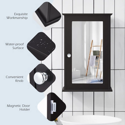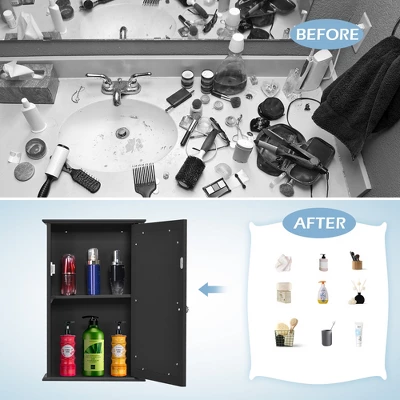 Are you looking for a storage organizer that can help you get rid of bathroom clutter? Then our mirrored wall cabinet may be a good solution. 2-tier design is convenient for storage and organize. And there is an adjustable shelf so that you can rearrange the space by adjusting the shelf. Close the door and hide the messy pieces from your sight, then you can enjoy the reflect in the clear mirror and do your morning routines. Besides, the cabinet is constructed of painted MDF material and durable metal accessories, and is securely mounted on the wall by reliable expansion screws. In addition to bathroom, you can also install it in your living room, laundry room, entryway, etc.