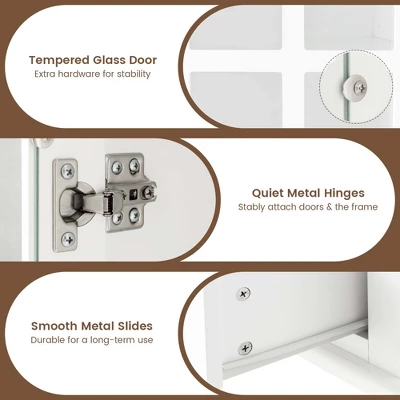 - Glass Doors & Adjustable Shelf: Perfect for displaying, the storage cabinet features 2 clear tempered glass doors that also present high durability. Plus, a 3-level adjustable shelf is included inside to make it free to adjust the height (1.4”/gear), so guests can better admire decorations in the cabinet.