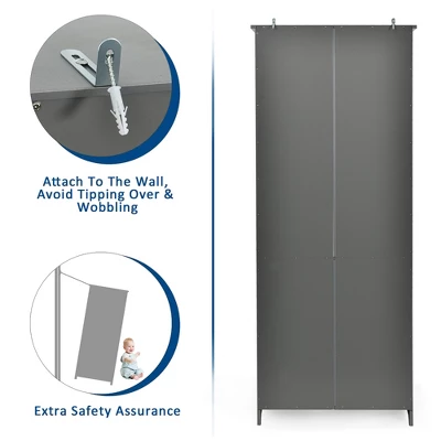 Costway Bookcase Shelving Storage Wooden Cabinet Unit Standing Bookcase W/Doors Gray