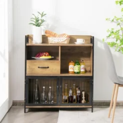 - Decorative Industrial Addition: Expect for improving your storage ability, the buffet table cabinet can also bring a fashionable industrial feeling to your home. Characterized by the harmonious combination of black metal and vintage wood panels, the bar sideboard is sure to attract a lot of attention.