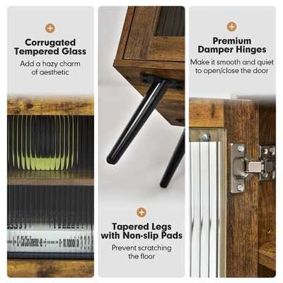 - Open & Enclosed Storage Options: The industrial sideboard features ample storage capacity, including 2 open compartments and 2 enclosed cabinets. It will facilitate classified storage or display. What’s more, the cabinet also boasts the tempered glass doors with corrugated pattern, which ensure durability and add to the appeal.