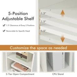 - Practical Adjustable & Removable Shelf: The adjustable shelf is also a genius design. It can be adjusted to 5 positions and there is 1.5” between every 2 positions. Therefore, you can customize the space according to your needs. Moreover, the shelf can be removed, which allows you to make the bottom shelf a CPU stand for convenience.