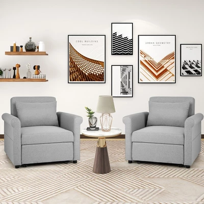 Costway Convertible Sofa Bed 3-in-1 Pull-out Sofa Chair Adjustable Reclining Chair Grey